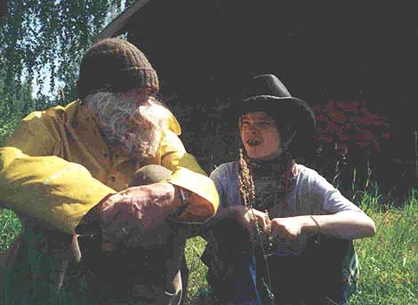 Ruhansilta meinasi pilata kesäjuhlatToimittaja Hanna-Kaisa Jermunen oli jo hyvissä ajoin kevättalvella sopinut Aleksi Ruhansillan kanssa haastattelusta kesäjuhlissa päivämäärineen ja jopa kellonaikoineen. Ruhansiltaa ei näkynyt eikä edes kuulunut Kokkopirtillä sovittuna aikana. Hän saapui vihdoin lähes tunnin myöhässä ilmoittaen syyksi sen, ettei käännä kelloa kesäksi vaan pitää samaa aikaa ympäri vuoden.Juhlan ohjelmaan olisí tullut kiusallinen tunnin tauko, ellei juontaja Juha Kukkosen olisi onnistunut improvisoida uutta ohjelmanumeroa. Juhlavieraat Oleksi Uuhkulainen (98) ja pelkosenniemeläinen Eino Mc Coy (12), jota Oleksi Uuhkulainen ensin luuli Andy McCoyksi, suostuivat sananvaihtoon oikein yleisön edessä. Antoisaa keskustelua himmensi jonkin verran sukupolvien välinen syvä kuilu ajatusmaailmassa ja sanallisessa ilmaisussa.Julkaisemme Uuhkulaisen ja McCoyn keskustelun sekä myös toimittaja Jermusen tekemän haastattelun.