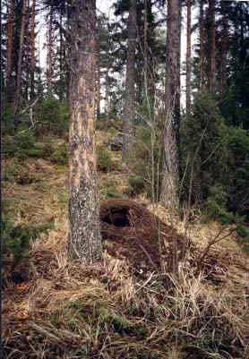 Huhtikuun alkupuolella poikkesivat monet kyläläiset Viitaniementien varressa lähellä Kyynäröojan siltaa ihmettelemässä usean metrin korkeuteen "käsiteltyä" mäntyä ja sen viereistä muurahaiskekoa. Tekijäehdokkaat vaihtelivat karhusta palokärkeen ja kaikkeen siltä väliltä. |