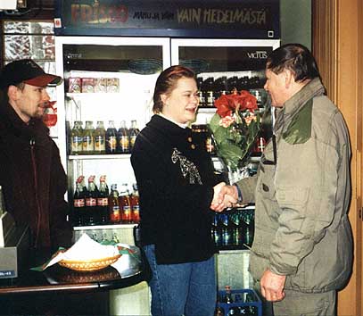 Kalevi Talvisalmi (oik.) onnittelee kylätoimikunnan puolesta